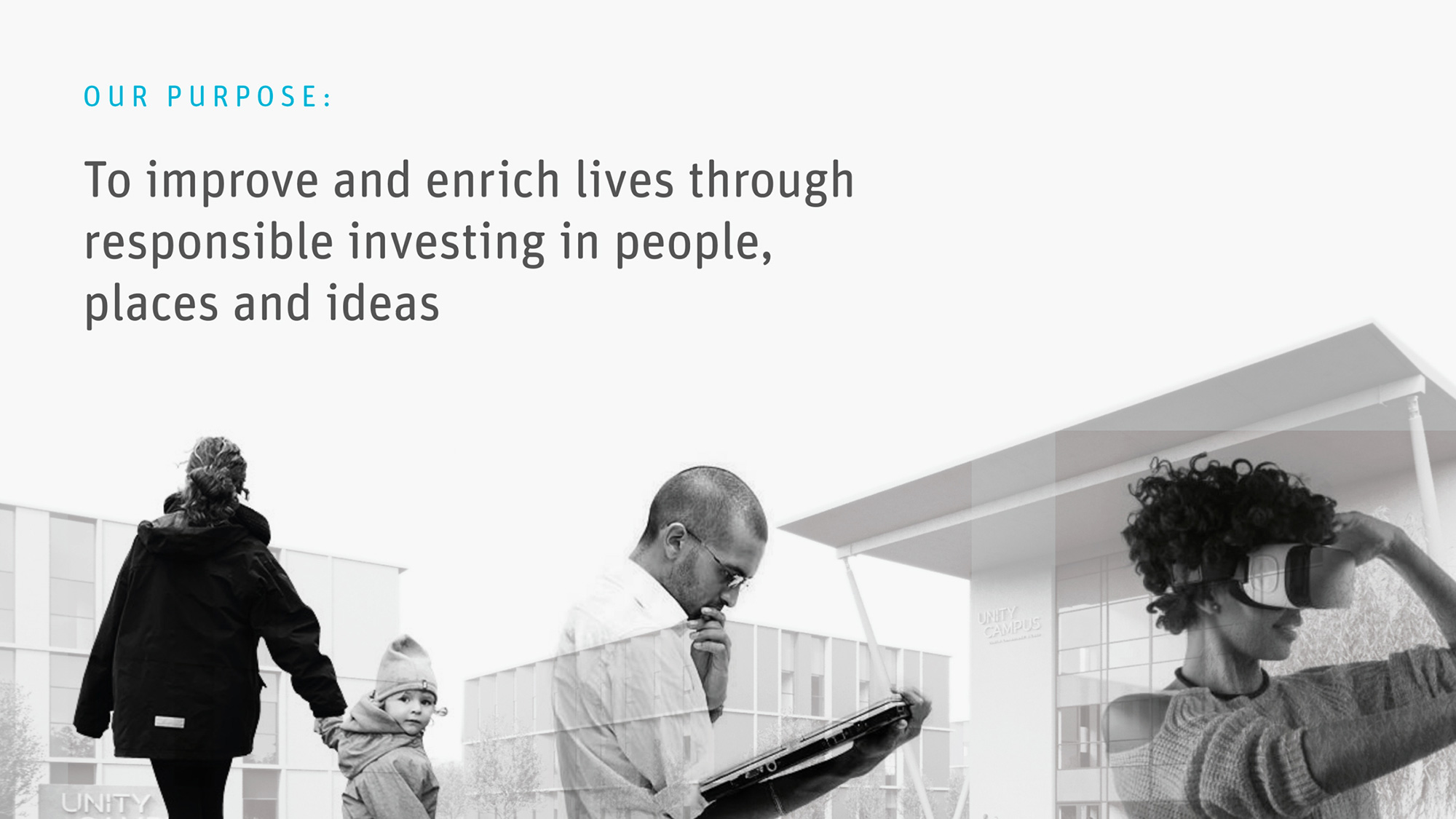 As a family-owned business, established over 85 years ago and in its third generation of stewardship, we have a clear sense of who we are and of the long-standing values that run through everything we do. We are united behind a simple purpose “To improve and enrich lives through responsible investing in people, places and ideas”. This means taking a long-term view when making decisions and evaluating the societal impact of all our activities, from property management and development, to investing in new businesses.