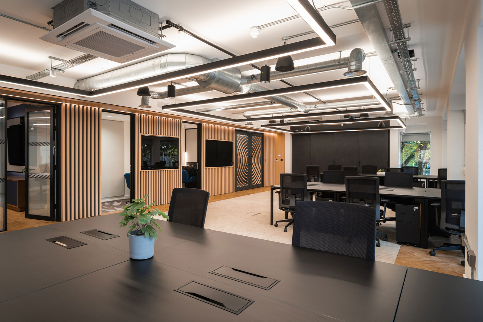 Internally, the offices were comprehensively refurbished to a cat A specification, with exposed services and ductwork, new LED lighting, air conditioning systems and a new toilet and shower block at ground floor level. A new lift was installed to service all floors and the common areas decorated throughout.